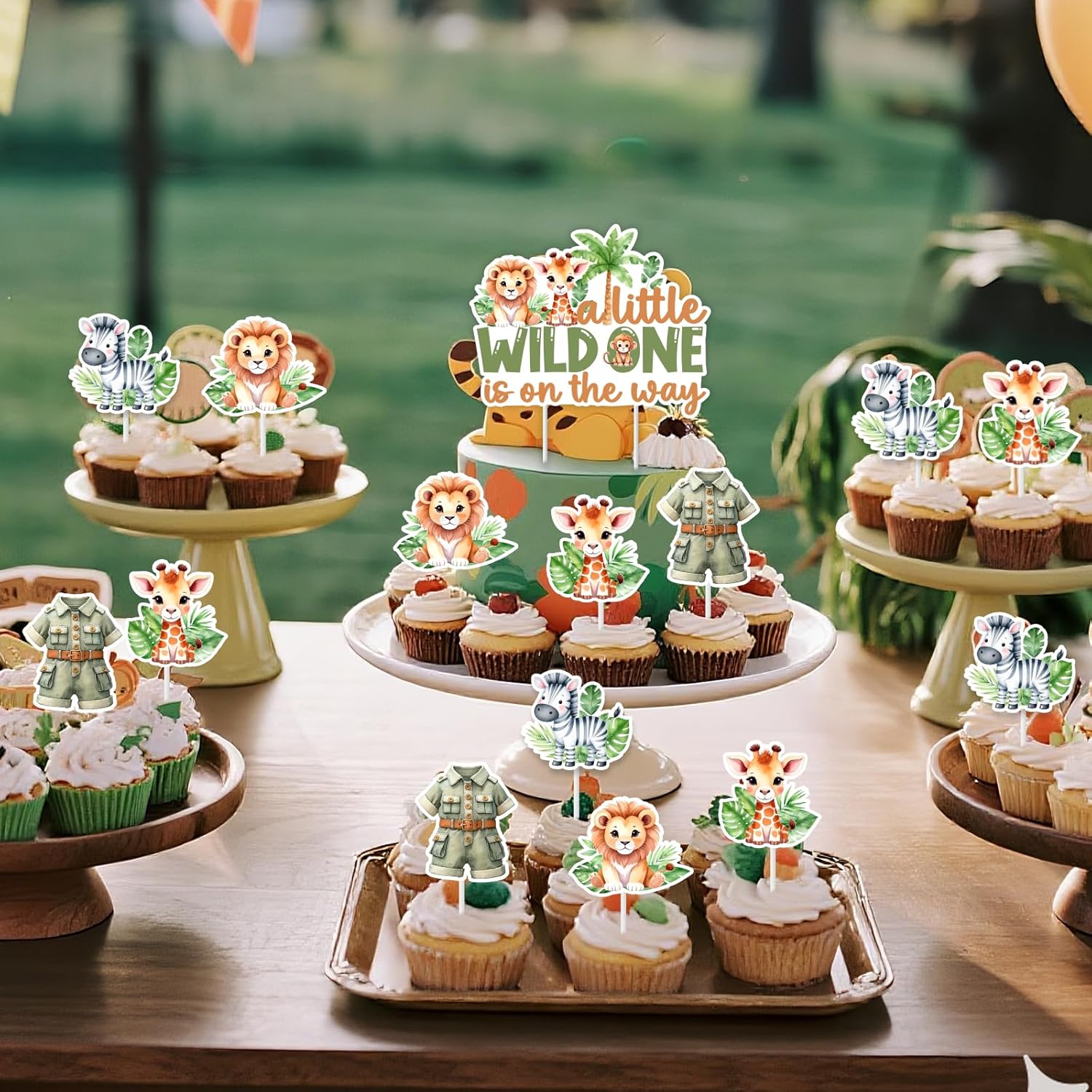 Elevate your jungle-themed baby shower with our vibrant safari animal cake toppers. This set brings the excitement of the wild into your celebration with its playful animal designs. Celebrate the upcoming arrival with decorations that capture the spirit of the junglePackage include 1*safari animal baby shower cake topper 5.51*4.44 inches 24* safari jungle animal party cupcake toppers